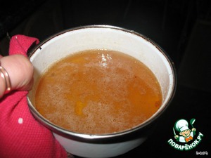 Соединить в кастрюльке мёд, сахар, ликер - довести до кипения.