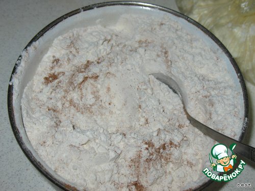 Затем ввести мучную смесь, чередуя с яблочным пюре, в 3 приема.