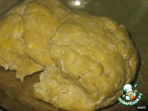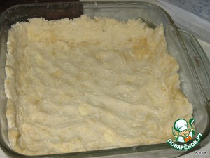 Форму смазать маслом. Разделить тесто на 3 части. Выложить одну часть в форму.