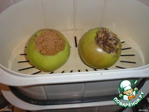 И в пароварку на 12 минут. Яблоки должны стать мягкими.
