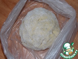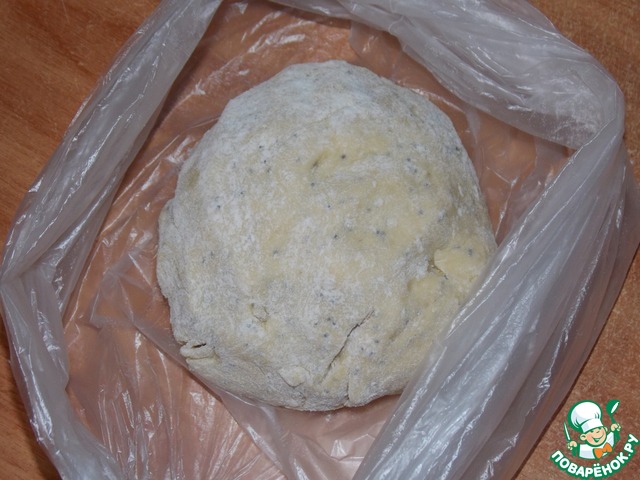 Замесить мягкое тесто. Убрать в пакет в холодильник на 30 минут.