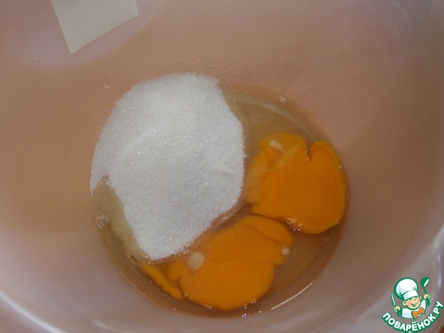 Яйца взбить с сахаром в течение 10 минут.