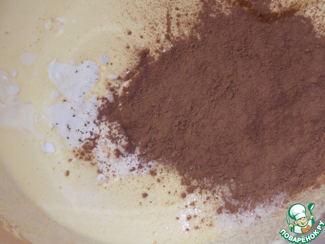 Добавить какао, соду и ванильный сахар.