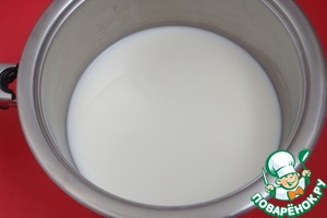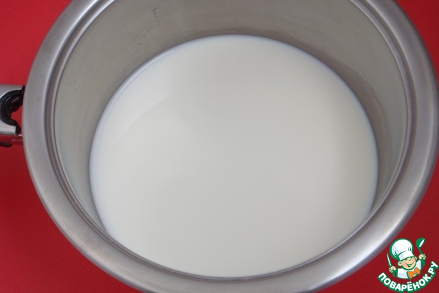 • Налить в сотейник молоко, всыпать сахарный песок и ванилин.