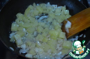 Смешать яичную смесь с обжаренными овощами и рыбой.