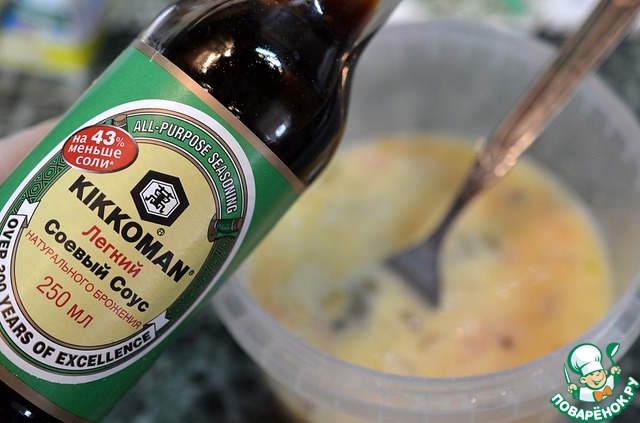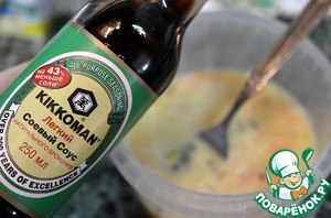 Добавить соевый соус. Я использую соевый соус ТМ Kikkomаn.