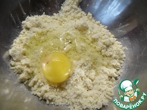 В полученную массу добавить яйцо, перемешать, тесто собрать в шар и убрать в морозилку на 15-20 минут.