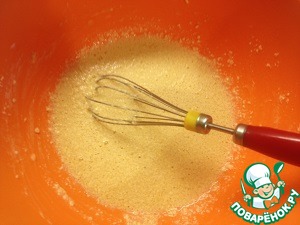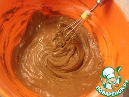 • Добавляем шоколад к яично-масляной смеси и хорошо перемешиваем. Всыпаем муку, просеянную с разрыхлителем.