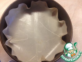 • Я выпекала в разъемной форме, дно которой выстелила ковриком для запекания. Коврик больше формы и образовал складочки, которые в итоге сформировали красивый край пирога.