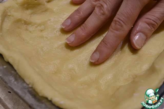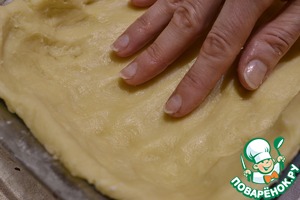 Охлажденное тесто распределяем руками по смазанной маслом форме, делаем бортики.