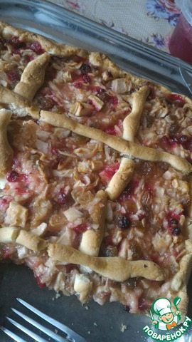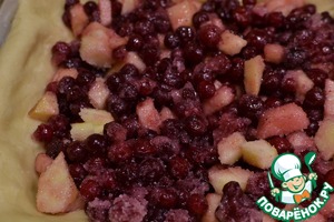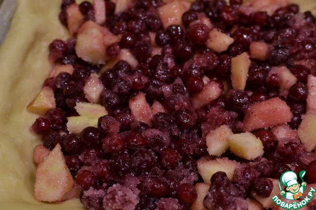- Брусника (у меня мороженая. С таким количеством пирог получается ооочень сочным, если нужно, что бы пирог не тек, то ягоды нужно взять не более 200 гр.) — 300 г