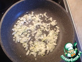 Наливаем в сковороду растительное масло и обжариваем мелко порезанный лук. Количество лука по вкусу.