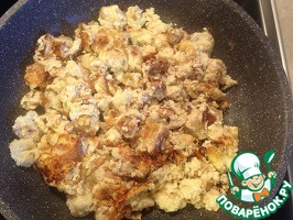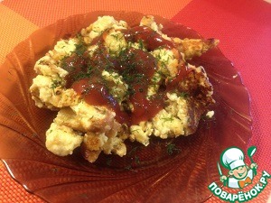 Вот так выглядит готовый омлет. Он получается не цельным, а кусочками.