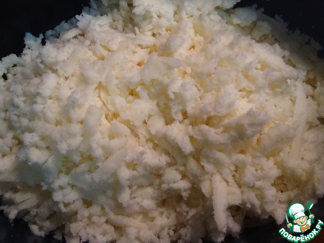 Сыр натереть на крупной терке. У меня в этот раз сулугуни. Но обычно беру российский или голландский. Вкусно с любым из них!