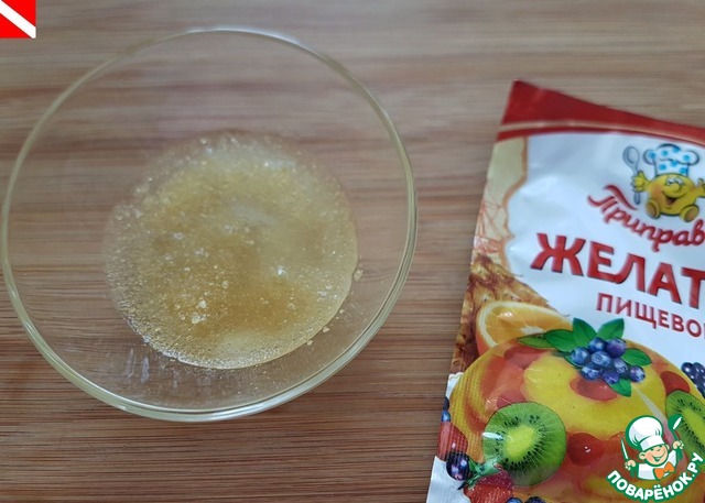 Я использую порошковый желатин и заранее замачиваю желатин и на конфи и на ванильный мусс. -