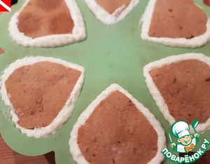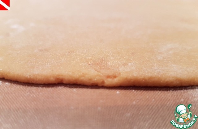 Тесто раскатать на пергаменте или силиконовом коврике толщиной не более 5 мм. Выпекать в заранее разогретой до 180 градусов духовке 5-7 минут. Затем подходящей вырубкой вырезать 6 заготовок.