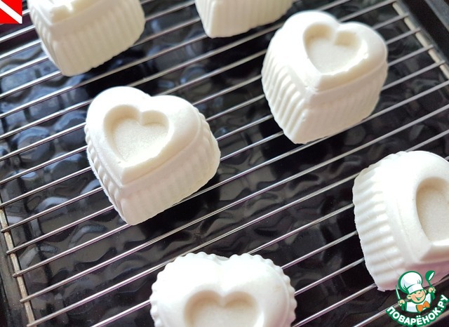 Ну и последнее, я взяла не совсем подходящие формочки - нужны с ровным дном. У меня были розочки и полусферы "пасхальные", сердечек мало. Но это повлияло лишь на визуальный эффект, что и видно на фото. В общем и целом автору огромное спасибо!