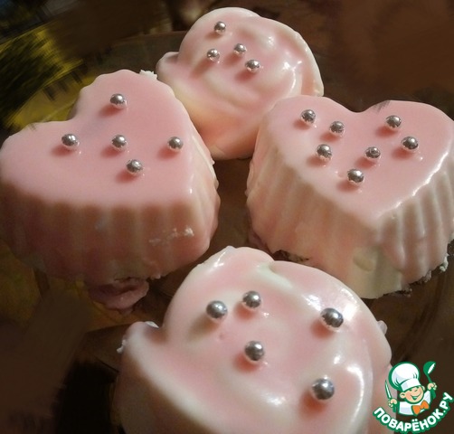 Пирожные достать из формы и залить глазурью. Рабочая температура глазури 30-35 градусов. Мне не нужен был толстый слой, поэтому я ее сильно не остужала. Пирожные убрать в холодильник на 3-4 часа для мягкой разморозки.