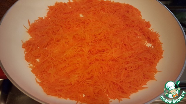 Разогреть на сковороде масло, я использовала топлёное сливочное масло, но подойдет любое масло для жарки. Выложить морковь в сковороду и тушить на среднем огне постоянно помешивая 3 минуты. В зависимости от диаметра сковороды и количества моркови, может понадобиться чуть больше времени. Если морковь суховата можно добавить немного воды, я не добавляла.