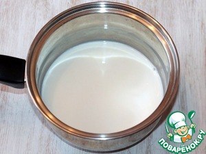 6. Приготовим крем. Молоко с сахаром поставим на плиту, доведем до кипения и до растворения сахара. Снимаем с плиты.