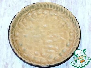 От охлажденного теста отделяем 1/4 часть и убираем в холодильник. Это для украшения пирога (валентинки). Остальное тесто распределяем в формочке.