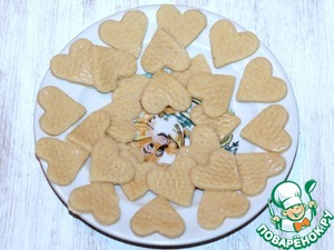14. Достаем 1/4 часть охлажденного теста. Припыляем столешницу мукой, раскатываем тесто толщиной 0,5 см и вырезаем формочкой сердечки (размер ~3 см).