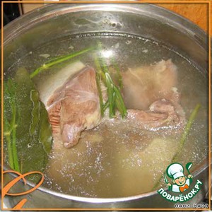 Язык отвариваем со специями, чистим шкурку, охлаждаем.