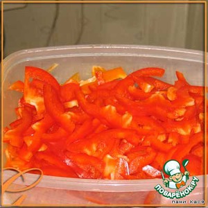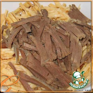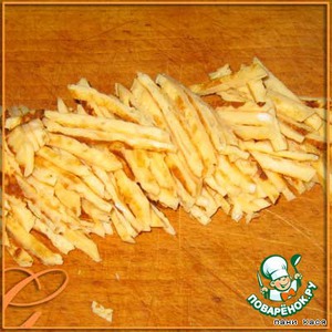 Шинкуем - тоже длинненькими полосочками тонкими,