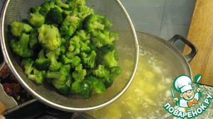 После того как картошка закипела, даем ей поварится 10 минут и добавляем промытую брокколи и варим минут 10