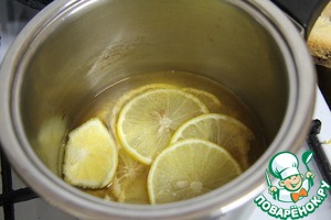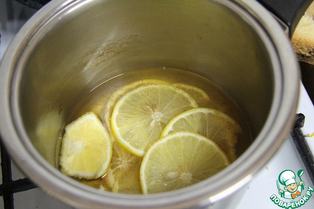 Готовим суфле. Подогреть вино, добавить пряности и лимон, нарезанный на тонкие кружочки. Оставить на 15 минут.