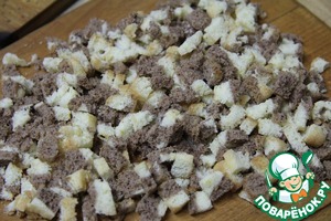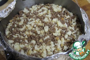 Остатки коржа мелко нарубить.