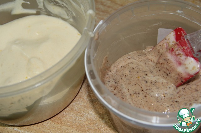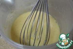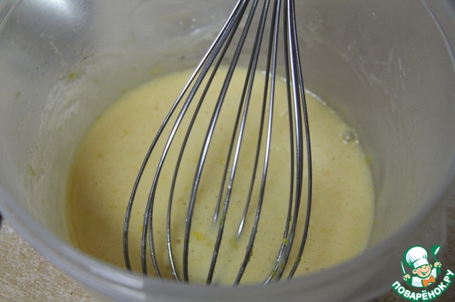 Желтки растереть с 2 столовыми ложками сахара, добавить ванильный сахар и лимонную цедру.