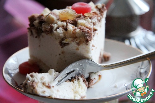 Перед подачей к столу украсить карамелезированными дольками лимона, засахаренной вишней или по своему усмотрению. У меня были только засахаренные кубики лимона. Их я и добавила.