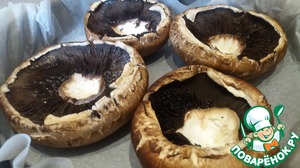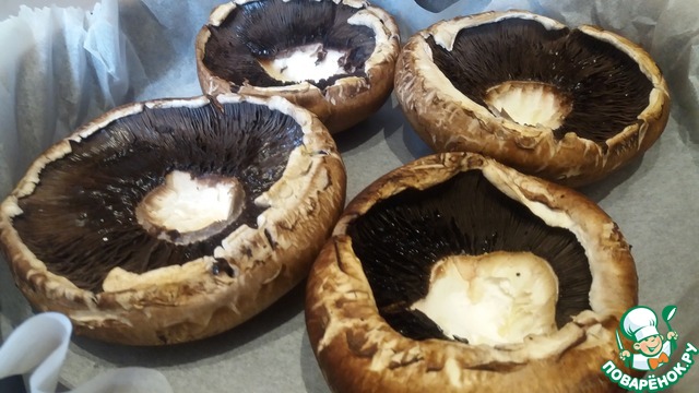 • Сырно-грибную смесь выкладываем в углубления, которые образовались после удаления ножек. Посолим.