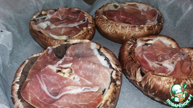 Вкусная закуска с грибами Portobello, пармской ветчиной и овечьим сыром!