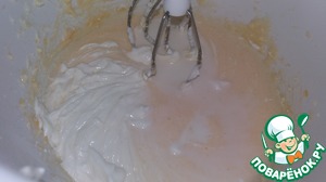 Взбиваем белок до устойчивых пиков, постепенно добавляя сахарную пудру. Меренгу выкладываем на пергамент в виде небольших лепешек, выпекаем при140 град около 50мин