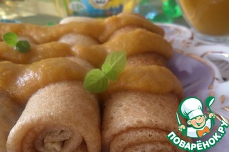 Можно полить мини-блинчики крем-мёдом и посыпать корицей сверху