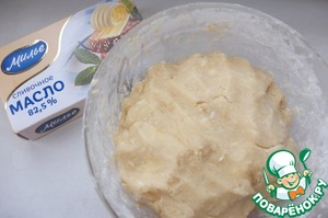 Размягченное сливочное масло, сметану, желтки, сахар перемешать до однородности. -