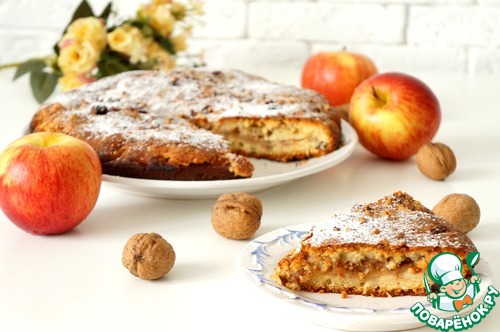 Рецепт «Яблочно-ореховый пирог с сахарной крошкой»: