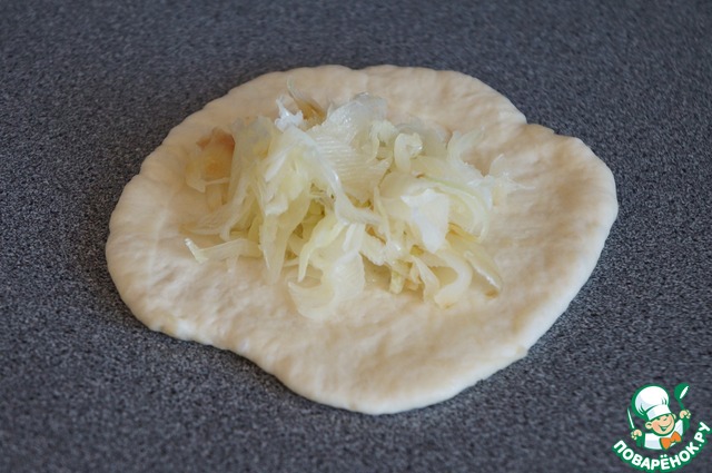 Раскатывать каждый кусочек теста (стол перед этим можно слегка смазать растительным маслом), выложить немного начинки, сформировать круглый или продолговатый пирожок.