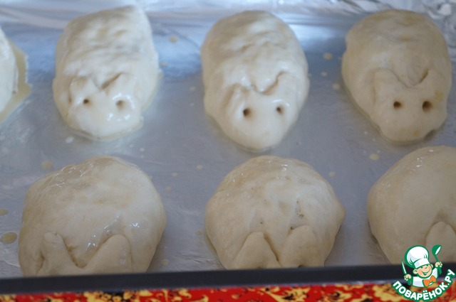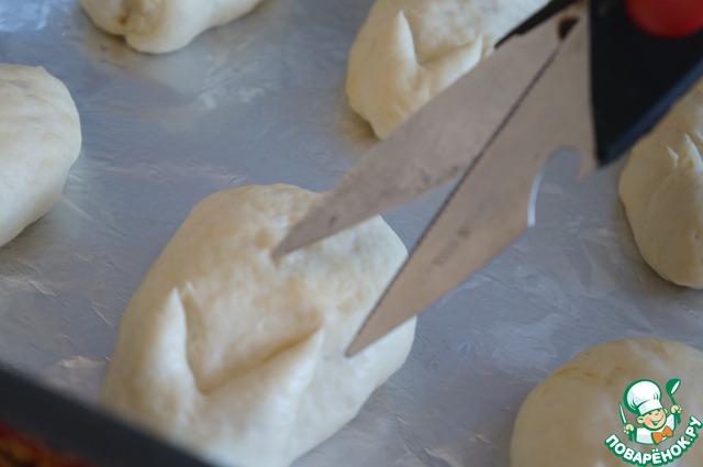 Кулинарными ножницами сделать надрезы на пирожках, формируя "ушки".