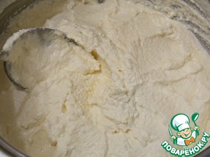 Соединить обе массы и взбить до однородной массы.
