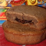 Выпекать при 180*С примерно 50-60 мин. Проверяем на сухую спичку не по середине (там жидкий шоколад), а чуть отступив от края. Дать полностью остыть.