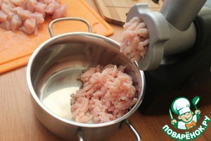 • Куриное филе вымыть, нарезать и пропустить через мясорубку.