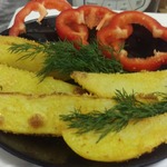 Почистить картофель и нарезать дольками (лучше брать картошки не круглые, а вытянутые - дольки будут красивее выглядеть).