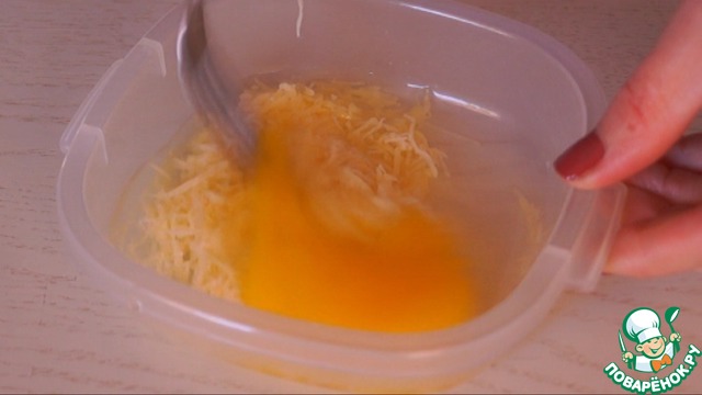Смешать тертый сыр, яйцо и щепотку соли