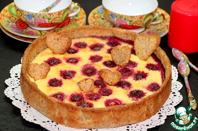 Порадуйте своего любимого в праздник таким пирогом. Хрустящее ореховое тесто и нежнейшая начинка. Рука так и тянется за следующим кусочком. Ягоды подойдут любые. Конечно, со свежими ягодами, этот пирог будет намного вкуснее. Малина, ежевика, брусника, смородина. Но тесто настолько вкусное само по себе, что и замороженная ягода хороша. Ну что, чайник ставить?