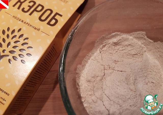 Просеять муку, соду и кэроб. В оригинальном рецепте было какао (0,5 стакана). Но с кэробом получается немного другое тесто и бисквит. Добавить растворимый кофе (опционально) и соль - щепотку. -