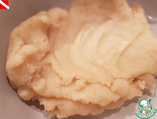 Тесто немного остудить и вмешать яйцо. В рецепте был указан вес яйца - 65 г, у меня яйцо весило 63 г, думаю, что 2 г не критично.