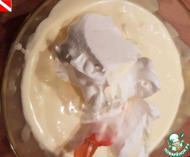 Сливки взбить и аккуратно, в несколько приемов ввести в шоколадную смесь.